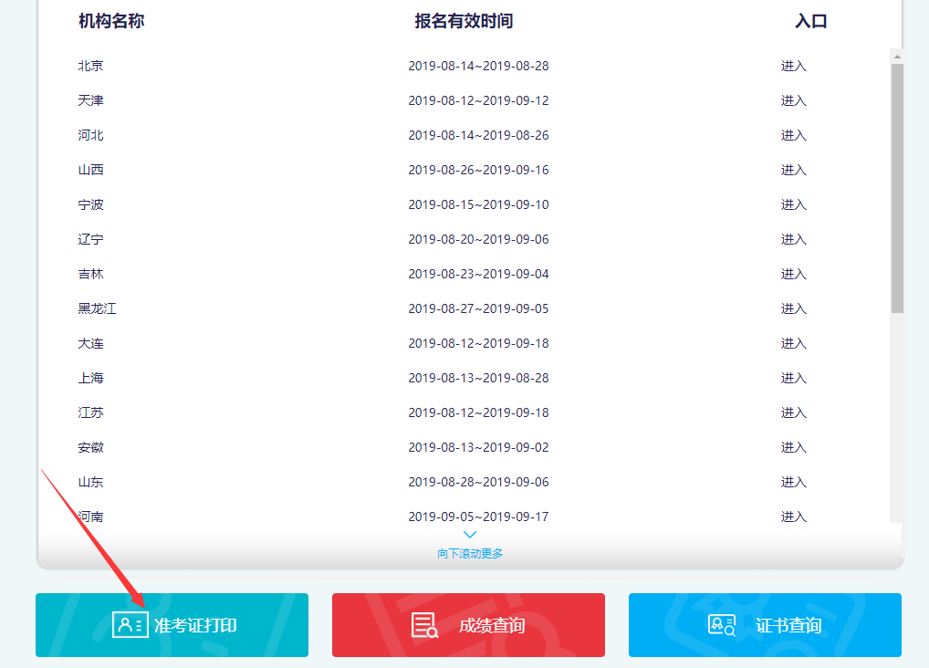 第三步:進入報名入口頁面后,點擊準考證打印。