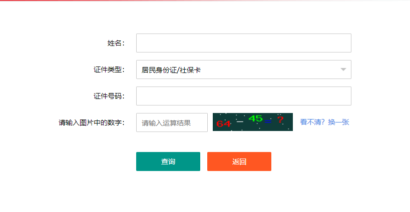 第四步:進入準考證打印頁面后,填寫個人信息,輸入姓名,選擇證件類型,輸入證件號碼,輸入圖片中的運算結果,最后點擊查詢即可。